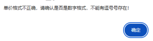 点晴模切ERP-弹出提示:单价格式不正确,请确认是否是数字格式,不能有逗号号存在!
