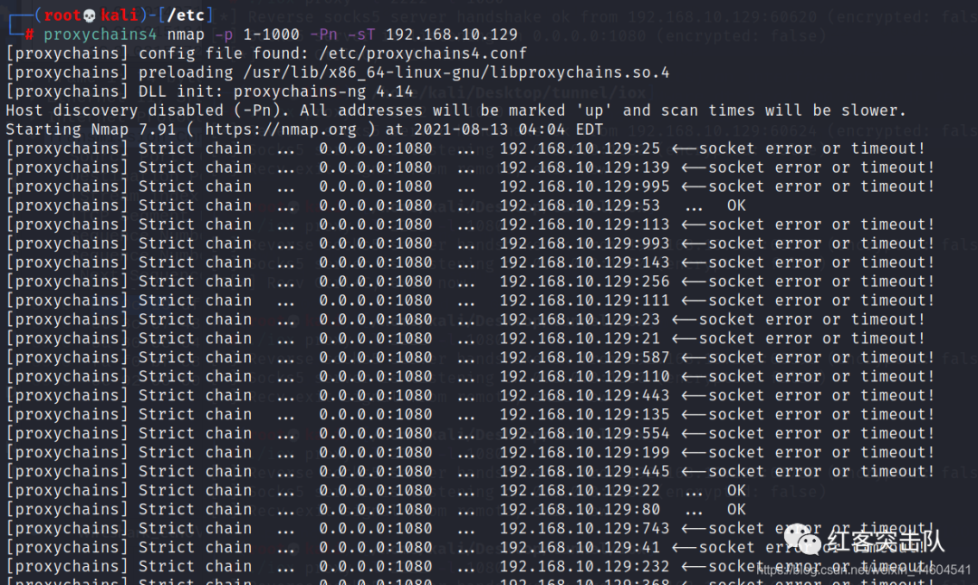 proxychains4 nmap -p 1-1000 -Pn -sT 192.168.10.129