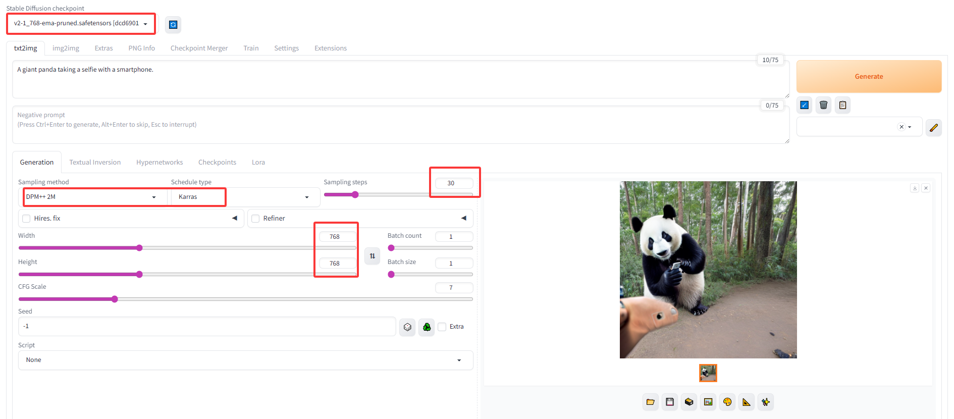 (4):重新启动,注意是在cmd的 conda 环境中重新启动服务。 选择v2时,有一些参数可以适当的修改一些,然后使用相同的提示词,重新点击生成。