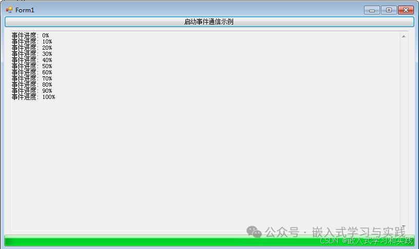 OnProgressUpdated(this, new ProgressEventArgs(i, $"事件进度: {i}%"));