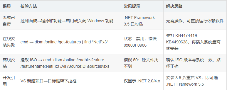 2008 年随 Win7 推出,把 2.0、3.0 的老底全打包,外加 LINQ、AJAX、WF、WCF、WPF 一堆新库。一句白话,装完它,很多老软件才能跑,不装就弹窗报错。