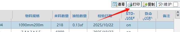 点中一条后背景变色后,点击打印按钮